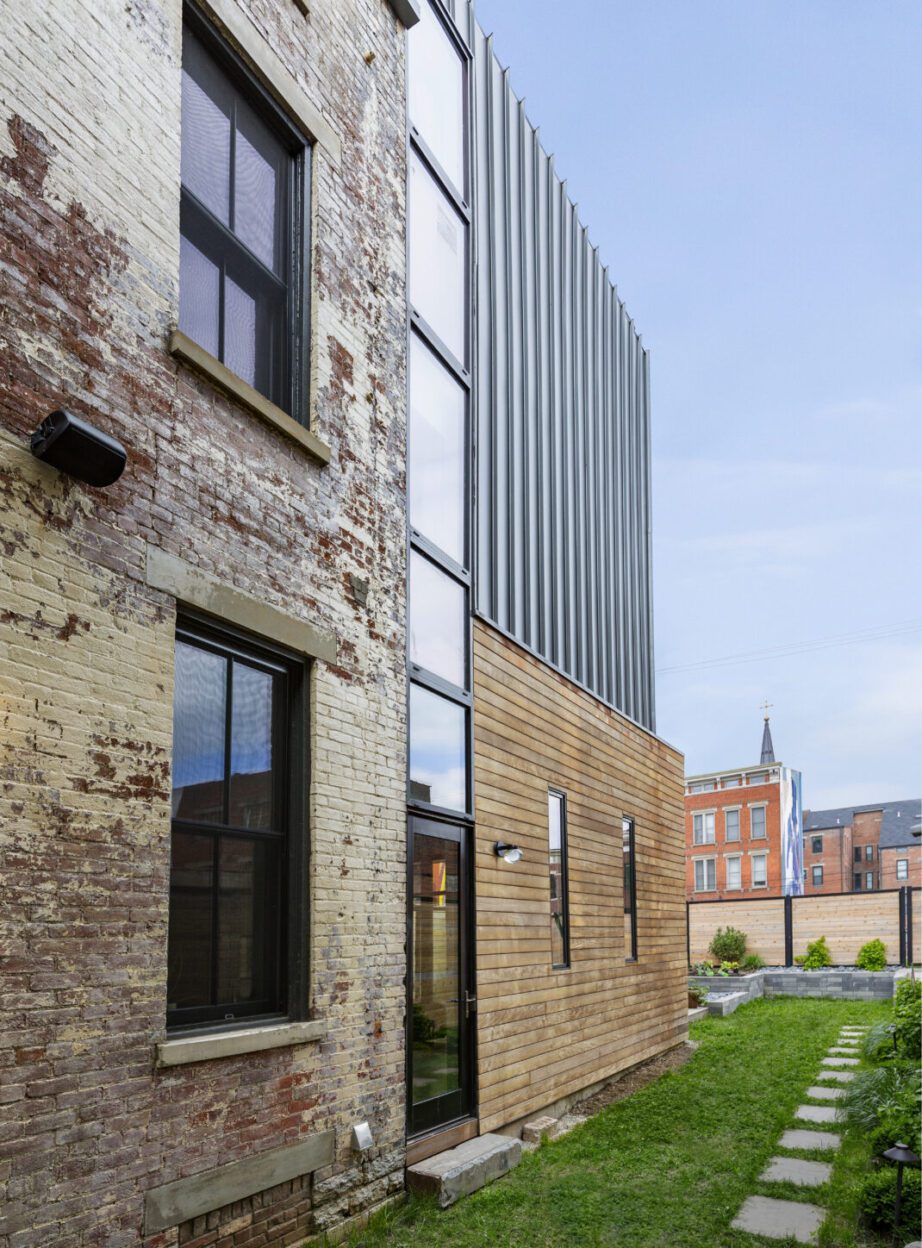 The Myers-Heckman Residence is a LEED Platinum renovation and addition to an 1870 townhouse in Cincinnati’s historic Over-the-Rhine neighborhood. Its historic status was a key driving force behind the design. The design seeks to respect the historic architecture while allowing the new interventions to be distinctly contemporary — all while significantly upgrading the home’s performance.